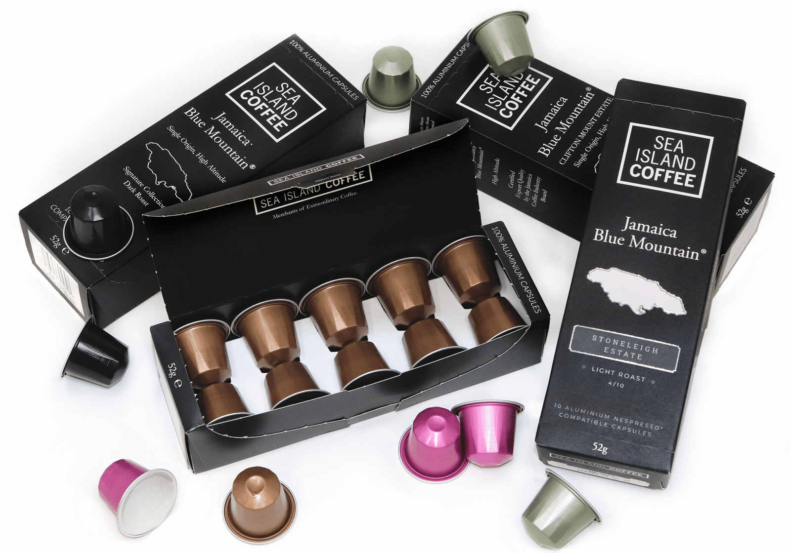 Το Jamaica Blue Mountain Bundle περιλαμβάνει 10 κάψουλες από κάθε ένα από τα διάσημα κτήματά μας: